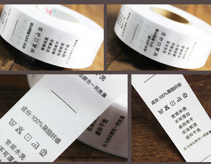 水洗標簽,是服裝服飾類關于商品成分及水洗說明的標簽,材質通常有緞面的,圖層布的和棉布帶的,通過標簽印刷機將內容印刷到不同的材料上。水洗標是幾種特殊材料做的標簽。它的實質也是一種標簽。只是在材料上跟普通紙質的標簽有所區別。主要應用在服裝行業,家紡行業,箱包行業里,主要是打印一些服裝參數和注意事項。可過洗不掉色。