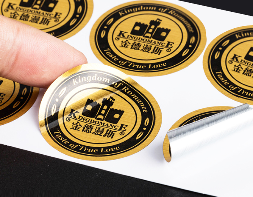 透明標(biāo)簽燙金封口標(biāo)簽:是一種在透明材料上面直接燙金、模切成標(biāo)簽,適合于產(chǎn)品外包裝。上面燙上公司LOGO,文字或者圖案等內(nèi)容,提升產(chǎn)品檔次。